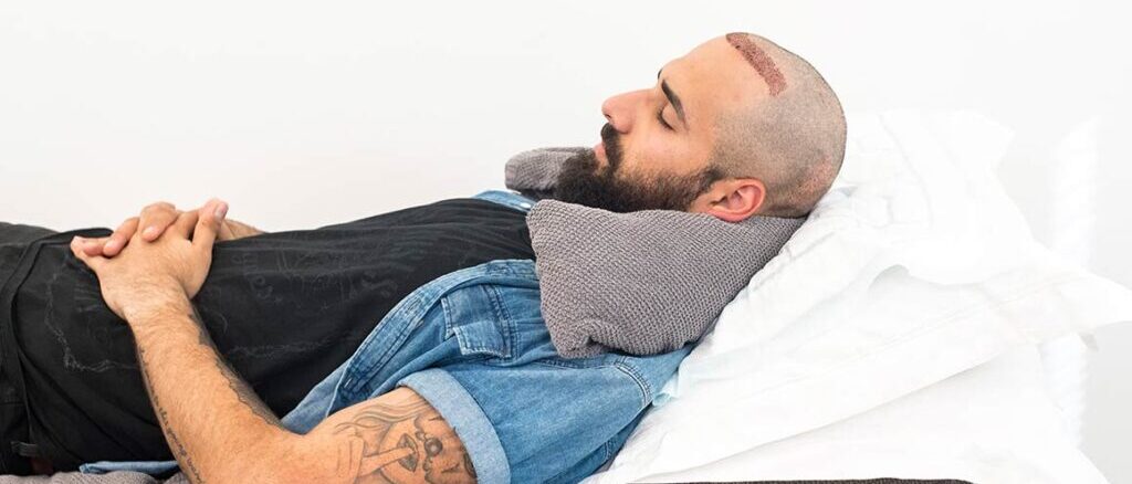 The donor area has been through extraction. The skin there is sensitive, slightly raw, and healing simultaneously with the recipient zone. Sleeping in a position where the back of the head presses hard against a firm surface adds unnecessary pressure to already-healing tissue and can cause discomfort significant enough to wake you during the night.